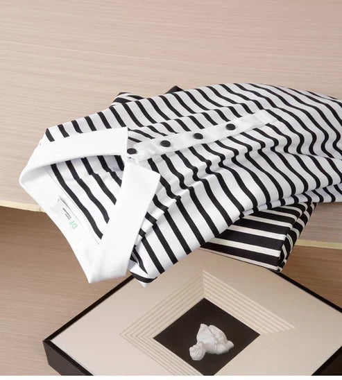 Enhance your everyday style with this men’s black and white striped polo shirt, designed to offer a perfect balance of comfort and modern fashion. The clean horizontal stripe pattern creates a timeless and stylish look that never goes out of trend.